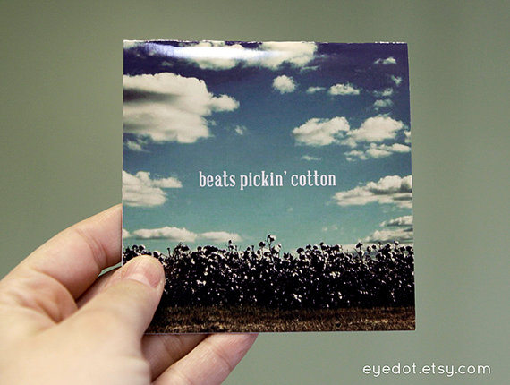 New in the shop: Beats Pickin’ Cotton glossy greeting card, $2.50
