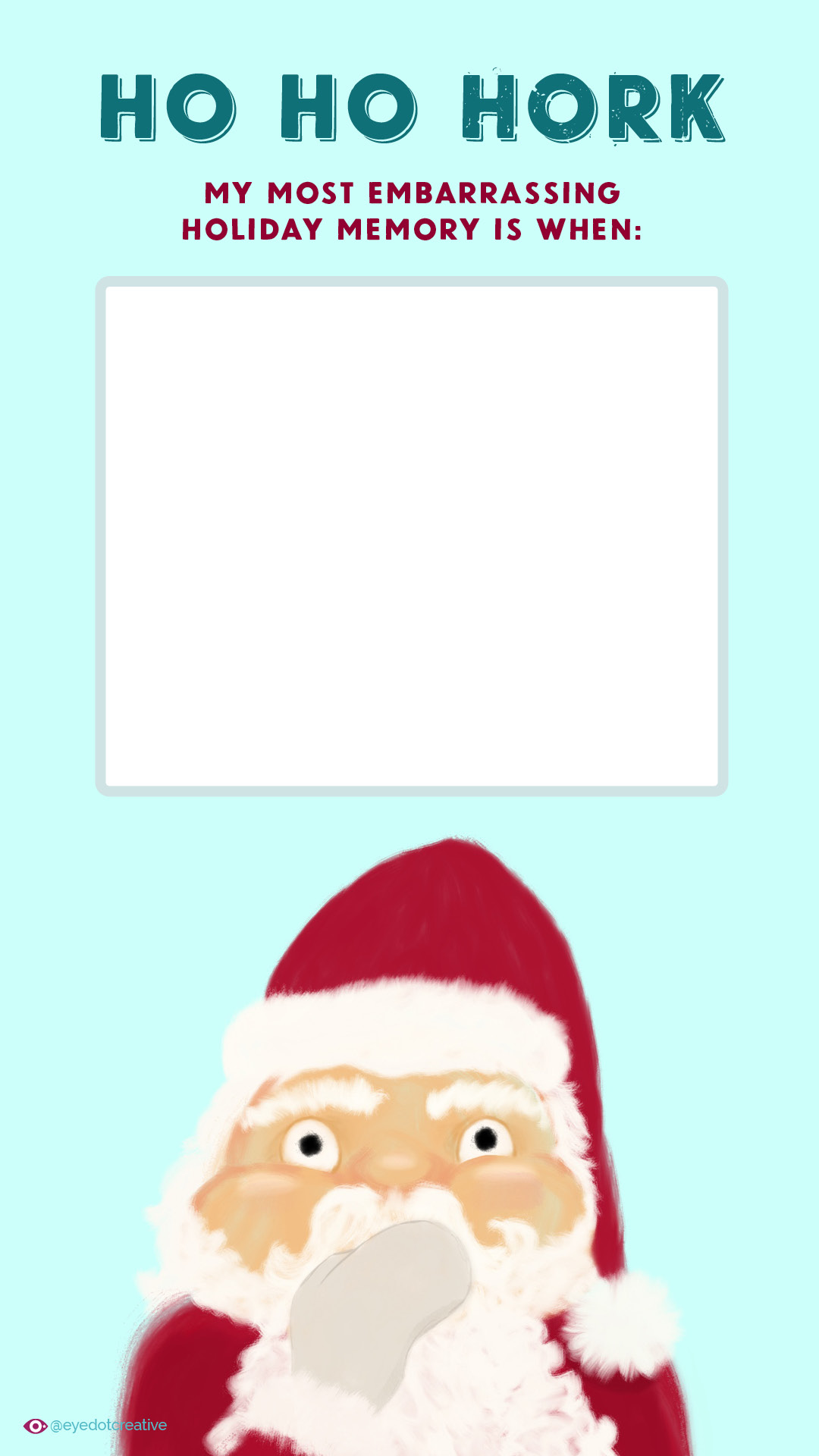 This card can be interpreted many ways! “Sometimes Santa has hangovers” is a good one, as is “holiday binge eating happens to the best of us.” You’re really only limited by your imagination for reasons why Santa might need to puke.