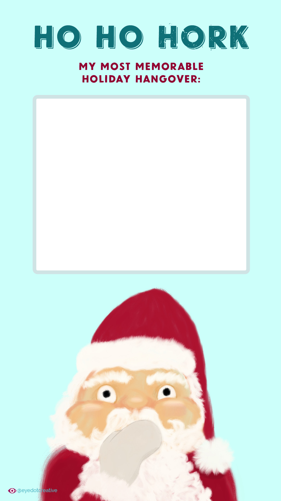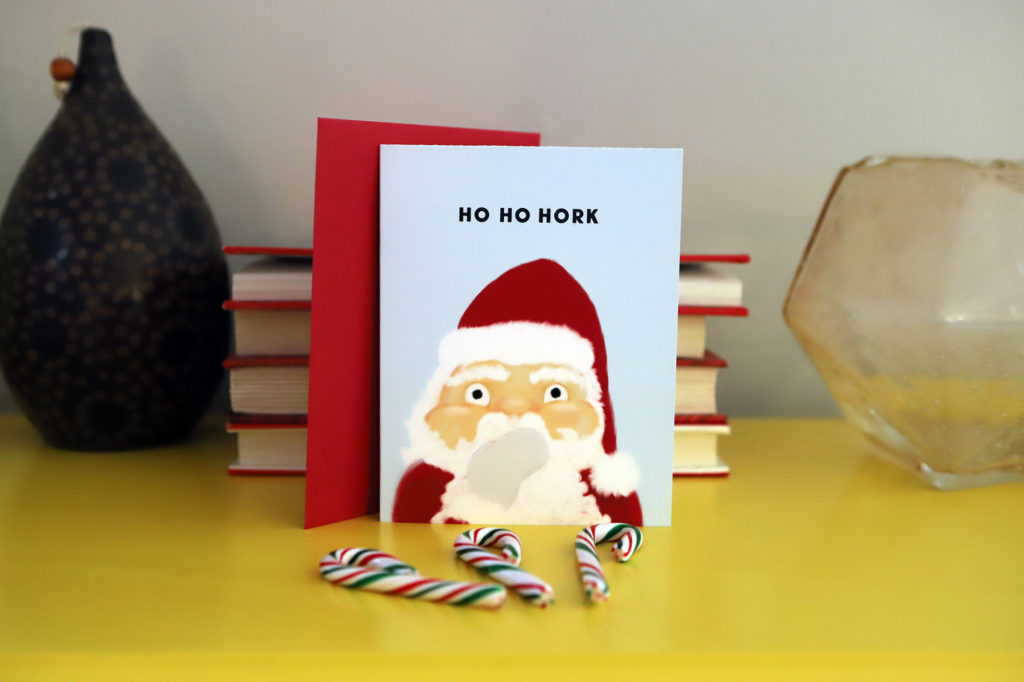 One day you’re doodling on the ol’ iPad and the next thing you know, you’ve drawn Santa about to barf. Then you realize you’re making it into a greeting card, and wondering what you did to deserve a brain that treats you this way.